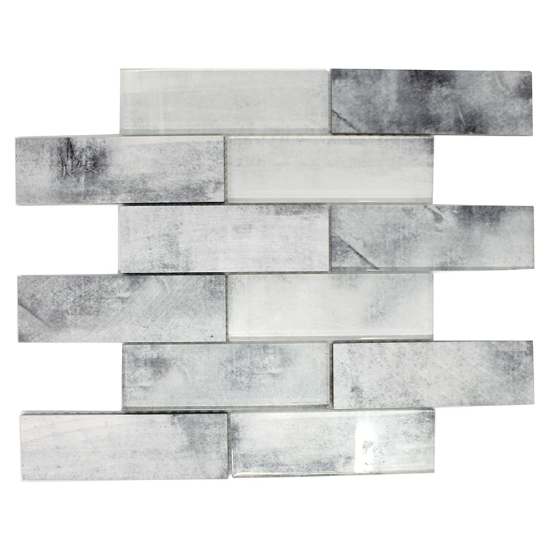 The color of the tile is applied to the back side of the glass and the surface of the tiles have a raised texture with a polished finish.